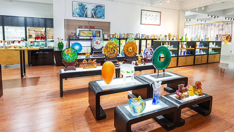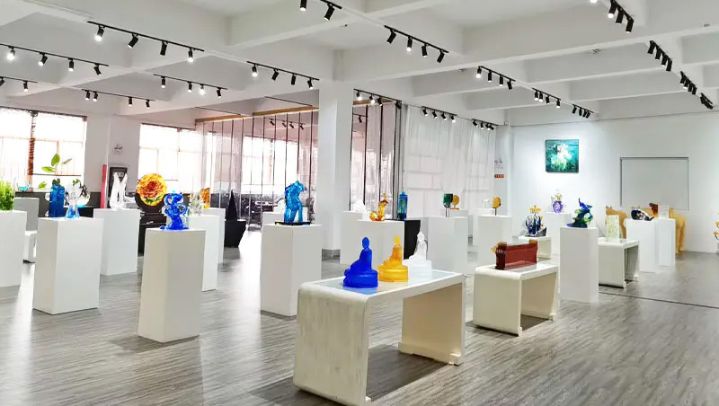 Umělecká díla ze skla se postupně vyvinula z tradičních řemeslných dárků až po dekorativní nábytek, buddhistickou kulturu, křišťálové nádobí a módní šperky. Výrobní základna společnosti se nachází v krásném a prosperujícím vodním městě Jinxi v Kunshanu v provincii Jiangsu. Disponuje výzkumným a vývojovým prostorem pro výrobu skla o rozloze 35 000 metrů čtverečních. Zařízení je vybaveno nezávislými konstrukčními schopnostmi, technikami modelování z hlíny a technologickými výzkumnými a vývojovými prostředky, které prokazují zralé dovednosti jak ve vývoji produktů, tak ve výrobních procesech.