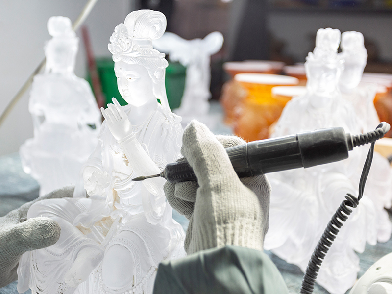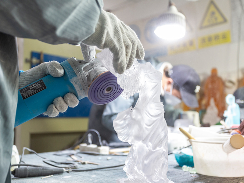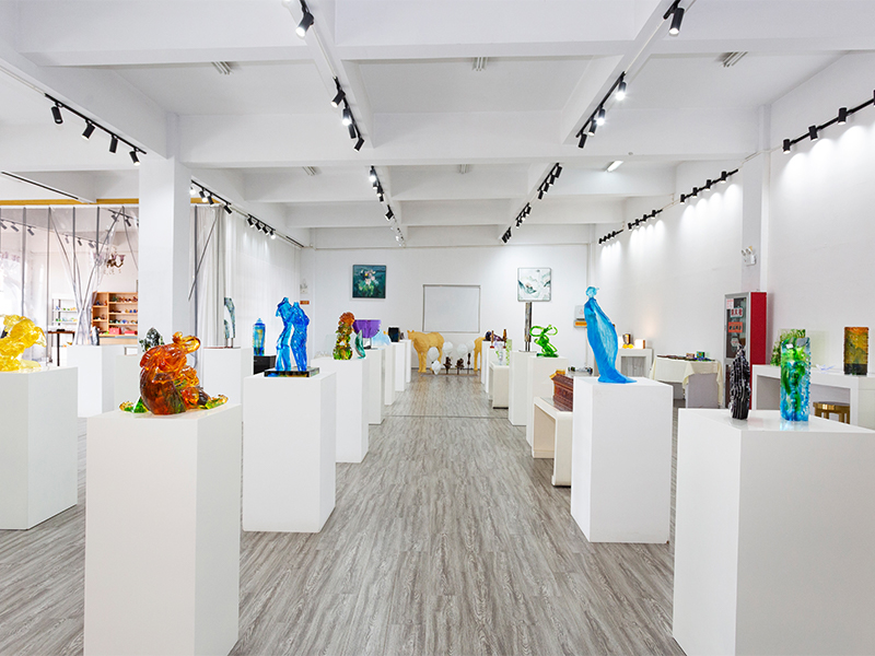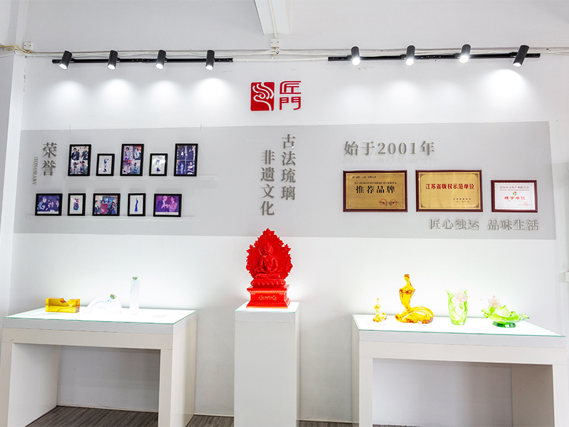 Umělecká díla ze skla se postupně vyvinula z tradičních řemeslných dárků až po dekorativní nábytek, buddhistickou kulturu, křišťálové nádobí a módní šperky. Výrobní základna společnosti se nachází v krásném a prosperujícím vodním městě Jinxi v Kunshanu v provincii Jiangsu. Disponuje výzkumným a vývojovým prostorem pro výrobu skla o rozloze 35 000 metrů čtverečních. Zařízení je vybaveno nezávislými konstrukčními schopnostmi, technikami modelování z hlíny a technologickými výzkumnými a vývojovými prostředky, které prokazují zralé dovednosti jak ve vývoji produktů, tak ve výrobních procesech.