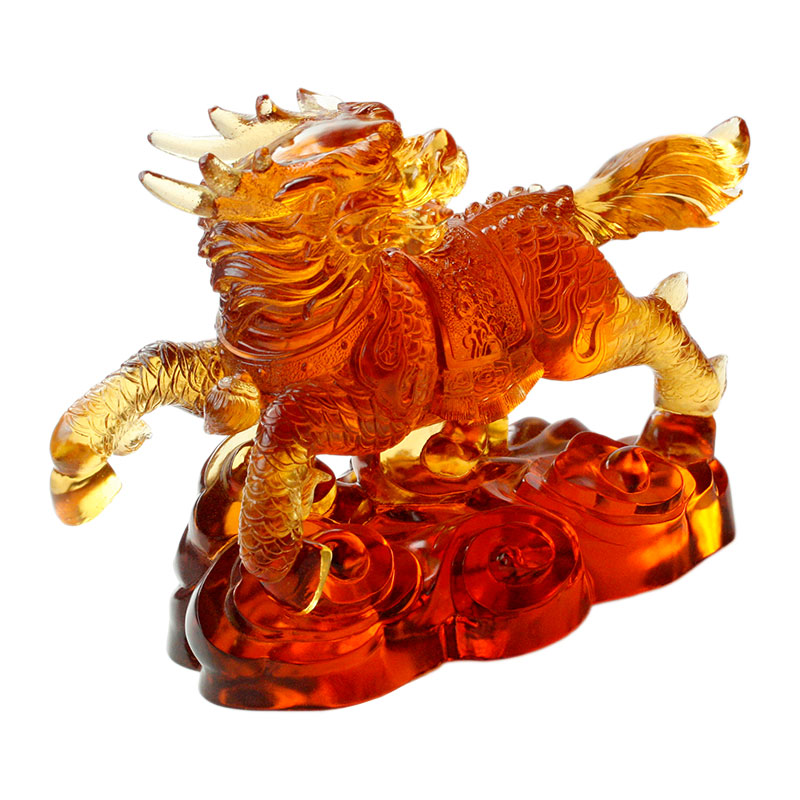 Tvar tohoto skleněného zvířete je realistický a každý detail je vykreslen velmi jemně, od výrazu obličeje zvířete přes svalové linie těla až po elegantní držení ocasu, což vše ukazuje vynikající dovednosti řemeslníka. Tato skleněná bestie přijímá teplý a vrstvený tón. Jantarová barva mu dodává majestátní a slavnostní temperament, jako by se jednalo o strážné zvíře z dávné legendy. Sklo bude lámat okouzlující světlo pod osvětlením světla, díky čemuž tato skleněná bestie předvádí různé vizuální efekty z různých úhlů, což přispívá k jejímu tajemnému kouzlu.