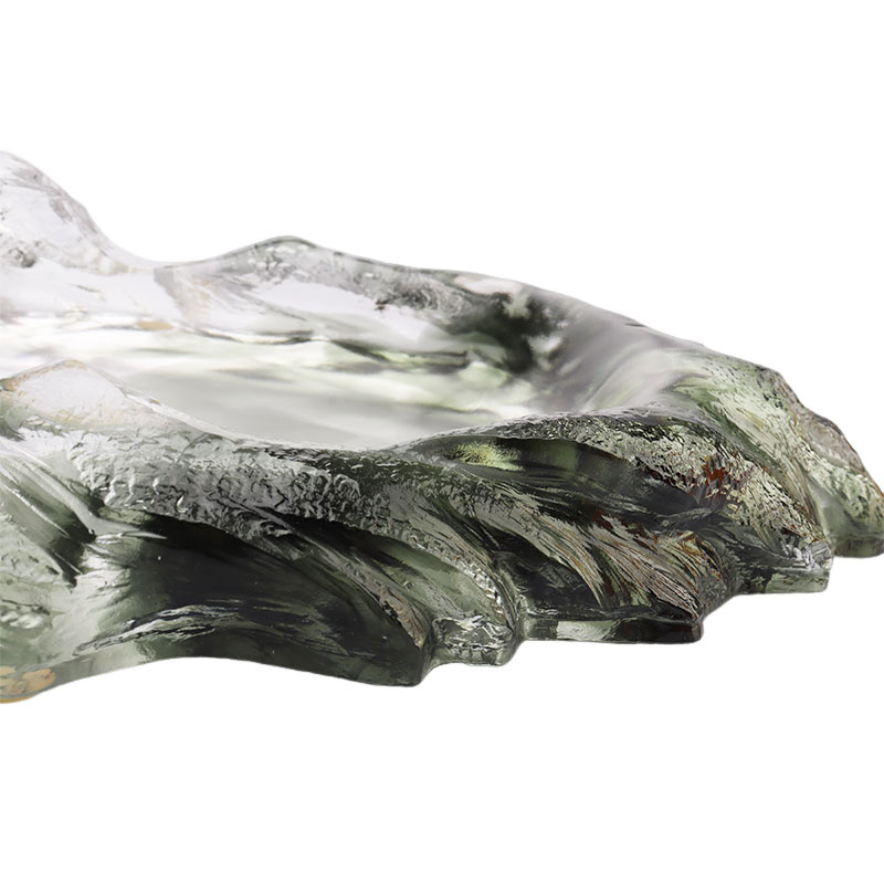 Tento skleněný talíř na ovoce je pečlivě vyroben starodávnou metodou ztraceného vosku. Ovocný talíř má tvar oválného talíře, tělo talíře tvoří zvlněné tmavě zelené hory. Jeho barva je hluboká a tichá, jako by kondenzovala hloubku a tajemnost hor a lesů.