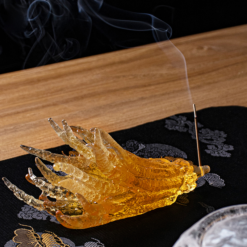 Tento držák na vonné tyčinky používá zlatý odstín, jasný jako slunce, což lidem dodává luxusní a elegantní pocit. Z hlediska tvaru má tento barevný skleněný držák na vonné tyčinky tvar ruky, s přirozeně nataženými prsty a každý detail je detailně vykreslen, což ukazuje na vynikající dovednosti řemeslníka. Textura a klouby prstů jsou živé, jako by dodávaly této ruce vitalitu. Praktičnost a umění držáku na vonné tyčinky se vhodně snoubí. Když je kadidlo zapáleno, kouř pomalu stoupá z prstů a vytváří tichou a tajemnou atmosféru. Ať už se používá jako držák na vonné tyčinky nebo je umístěn v interiéru jako dekorace, může přidat do prostředí jedinečnou uměleckou atmosféru.