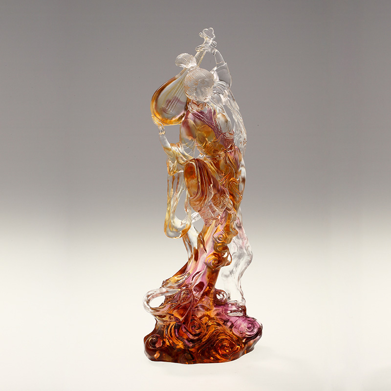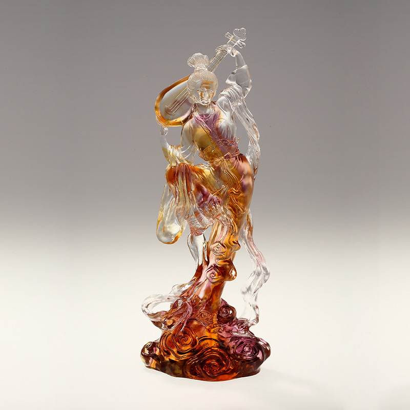 Ženská postava v této půvabné skleněné soše je vysoká a rovná, s různými způsoby, jako by v sobě skrývala nekonečnou sílu a eleganci. Každý detail je vykreslen živě. Linie jejích šatů jsou hladké, jako by se pohybovaly ve větru, což ukazuje na dynamickou krásu. Chytré je barevné sladění skla, ať už jde o elegantní tóny nebo ostré kontrasty, z nichž obojí může zvýraznit její noblesu a výjimečnost.